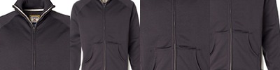 100% polyester sweater knit bonded to fleece - 340 gsm; Custom Spyder knit jacquard; Brushed microdenier tricot inner collar; Modern fit; Raglan sleeves; Reverse coil center front zipper; Zippered handwarmer pockets;
