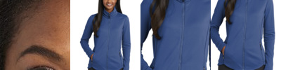 A smooth face, brushed back and contrast coverstitching make this warm fleece jacket a classier alternative to more casual fleece. Can be zipped in and secured by snap attachments inside an outer Collective layer 5.9-ounce, 100% polyester fleece Slightly longer length Ruching at collar Molded center front zipper Front reverse-coil zippered pockets Open cuffs and hem Tulip hem